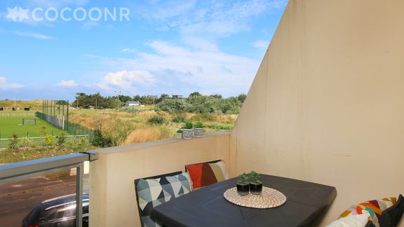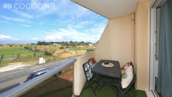 - Un balcon de 5 m² avec table, chaises de jardin, et un parasol pour profiter des beaux jours