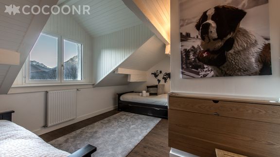 - 1 chambre avec 2 lits simples, placard, jeux pour enfants.