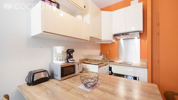- Une cuisine équipée avec notamment : bouilloire électrique, four, four à micro-ondes, grille-pain, plaques de cuisson...