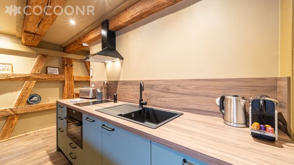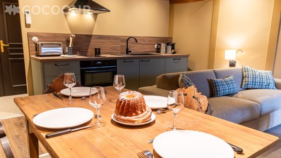 - Une cuisine équipée avec notamment : bouilloire électrique, four, grille-pain, lave-vaisselle, plaques de cuisson...