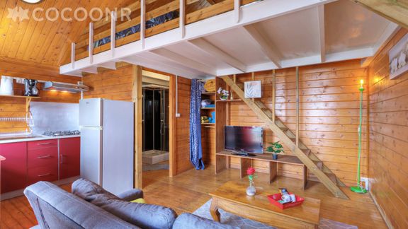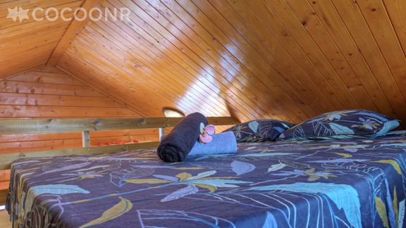 - Un espace nuit en mezzanine avec un lit double (140×190)