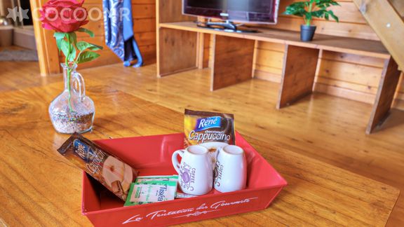 - Une kitchenette équipée avec notamment : bouilloire électrique, four, grille-pain, plaques de cuisson...