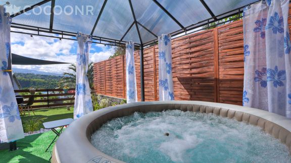 L'agence Cocoonr / Book&Pay vous propose à la location, à l'Entre-Deux, cette maison en bois, d’une superficie de 30 m², avec vue montagne, jacuzzi, et pouvant accueillir jusqu’à 4 voyageurs. Elle est composée d’une jolie pièce à vivre, d'une kitchenette équipée, d'une salle d'eau (avec douche) et vous pourrez profiter d’un jardin d’environ 50 m². Wifi (fibre optique), draps et serviettes inclus, nous n’attendons plus que vous !