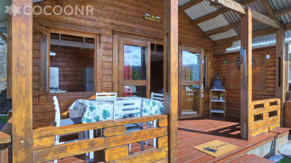 🙂 L'extérieur est très sympa avec le jacuzzi, ce petit chalet est pratique et chaleureux. Le petit déjeuner au soleil fait bien commencer la journée ☀️