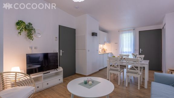 - Un séjour de 23 m² avec canapé-lit double, TV et coin repas