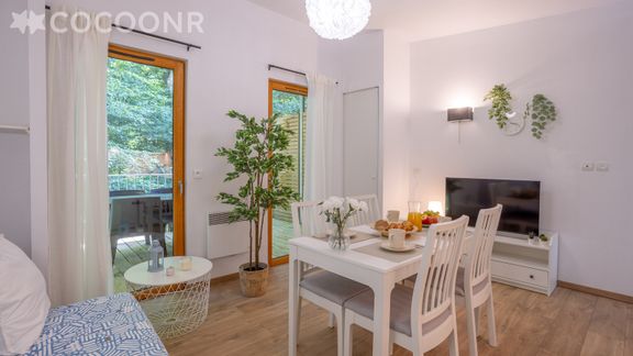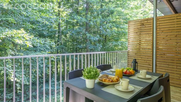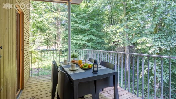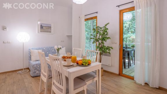 🙂 Le parc en sous-bois apporte de la fraîcheur appréciable en plein été. Les logements sont bien espacés les uns des autres. L'intérieur est joli.