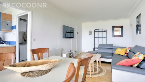L’appartement est vraiment bien équipé, on y a même trouvé un four à raclette que nous avions oublié. Les lits étaient propres et impeccable. Joliment décorées. Salon/Séjour spacieux et terrasse pour l’apéro ! Nous étions 2 adultes et 2 enfants et avons tous apprécié notre séjour sur un week-end prolongé. La situation aussi proche de la mer est un atout incroyable. Calme de la résidence, place de parking,balade. On recommande à 100%