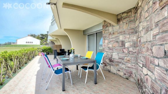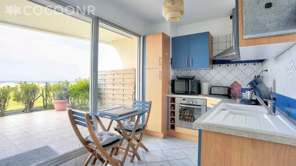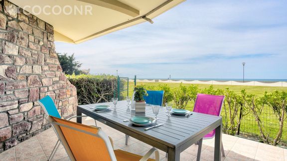 Très bel appartement super équipé avec une superbe terrasse avec vue sur la baie et accès direct sur la plage.