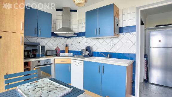 - Une cuisine équipée avec notamment : bouilloire électrique, four, four à micro-ondes, grille-pain, lave-vaisselle, plaques de cuisson...
