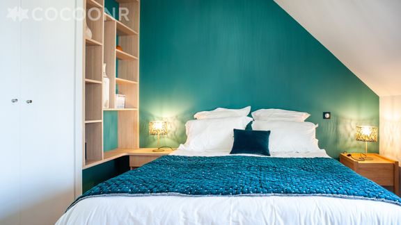 - Chambre 2 : un lit queen-size (160×200) qui peut se séparer en deux lits.