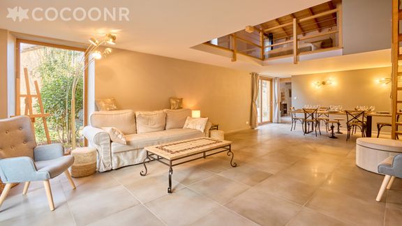 Elle est composée d'une jolie pièce à vivre de 40 m², d'une cuisine équipée, de trois belles chambres dont une en mezzanine, de trois salles de bain (avec douche et baignoire) et vous pourrez profiter d'un jardin d'environ 1 000 m². Wifi (fibre optique), nous n'attendons plus que vous !