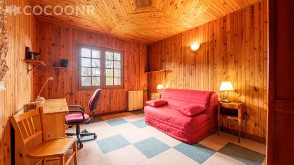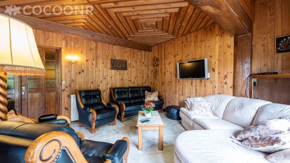 - Une pièce de vie de 30 m² avec cheminée fonctionnelle, canapés, fauteuils et TV