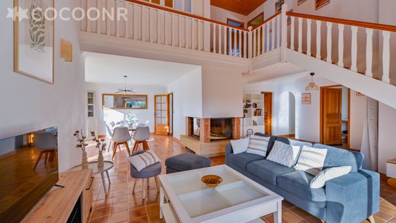 - Une pièce de vie de 40 m² avec une TV connectée, une cheminée et son coin salon