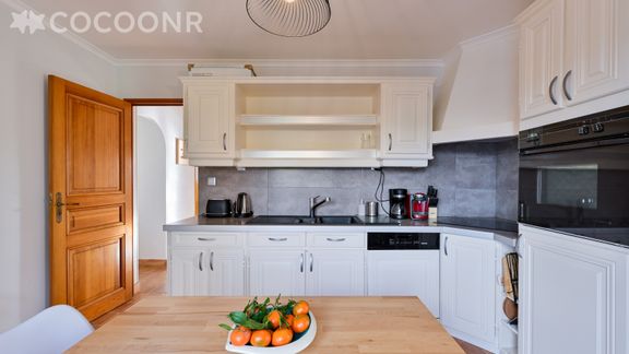 - Une cuisine fermée équipée avec notamment : bouilloire électrique, four, four à micro-ondes, grille-pain, lave-vaisselle, plaques de cuisson...