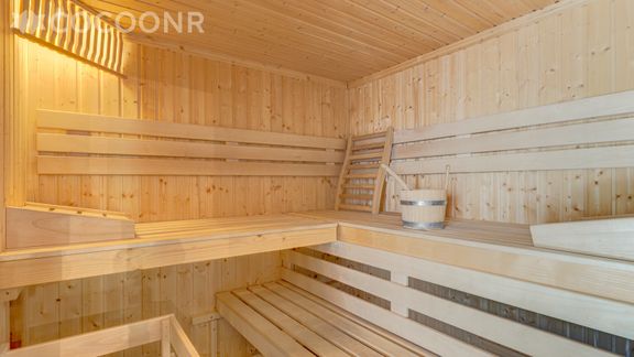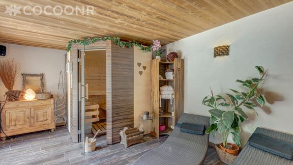 - Espace détente avec sauna traditionnel de 4/5 places ouvert de 16h à 19h, douche et WC s'ouvrant sur la terrasse extérieure aménagée avec un jacuzzi.