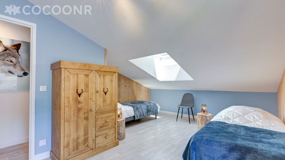 - Chambre 3 aménagée de 2 lits simples et une armoire.