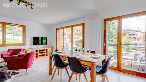 Idéal pour un séjour en été comme en hiver, vous profiterez d'une pièce à vivre spacieuse, une cuisine moderne et équipée, 3 chambres, 2 salles de bains. Le balcon vous offre une magnifique vue sur la montagne. Garage privé. Draps et serviettes en supplément. Wifi.