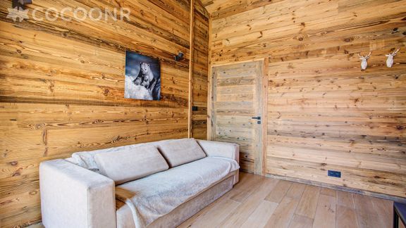 Beau chalet.Meublé avec goût SpacieuxJaccuzi au topLe seul bémol demeure la chambre construite a la place du garage. Il s agit d'un canapé lit avec une mauvaise literie et la piece doit être chauffée avec un chauffage electrique mobile qui diffuse une odeur de plastique brulé...