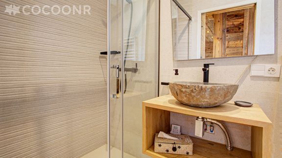 - Chambre 1 : un lit queen-size (160×200) et une salle d'eau attenante avec douche et WC