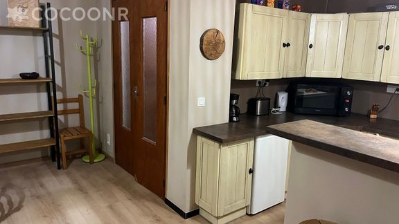 - Une cuisine équipée avec notamment : bouilloire électrique, four, four à micro-ondes, grille-pain, plaques de cuisson, cafetière Senseo...