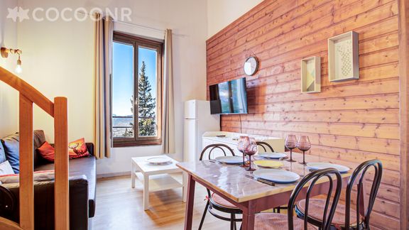 L’agence Cocoonr vous propose à la location, à Font-Romeu-Odeillo-Via, cet appartement en duplex avec station de ski accessible à pied et vue montagne, d'une superficie de 41 m² et pouvant accueillir jusqu'à 5 voyageurs.