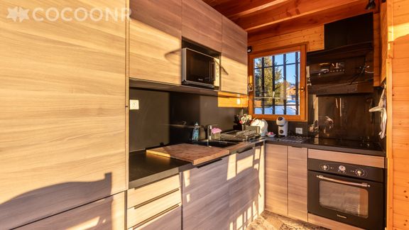 - Un espace repas et une cuisine équipée avec notamment : four, four à micro-ondes, grille-pain, lave-vaisselle, plaques de cuisson...