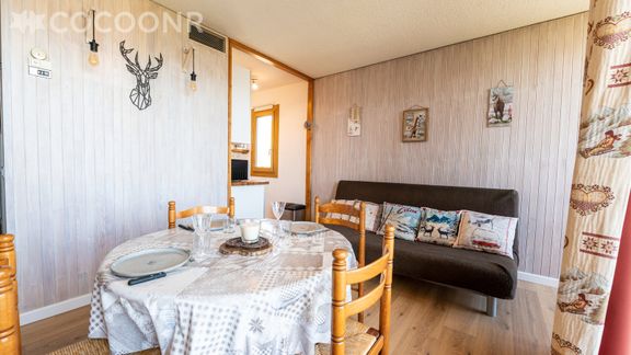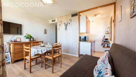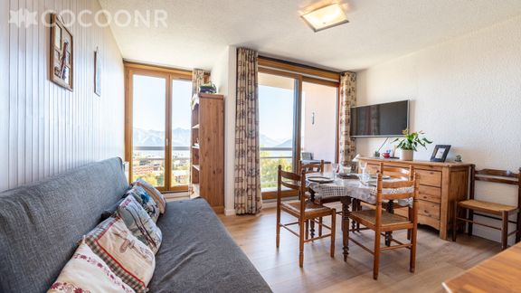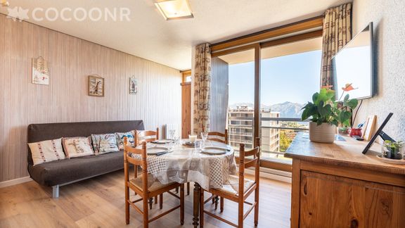 L'Agence Cocoonr/Book&Pay vous propose, sur la commune de Fontcouverte-la-Toussuire, cet appartement avec vue montagne, avec station de ski accessible à pied, d’une superficie de 33 m² et pouvant accueillir jusqu’à 5 voyageurs. Situé au 6e étage (avec ascenseur), il se compose d’une jolie pièce à vivre de 12 m², d'une cuisine équipée, d’une belle chambre et d'une salle de bain.