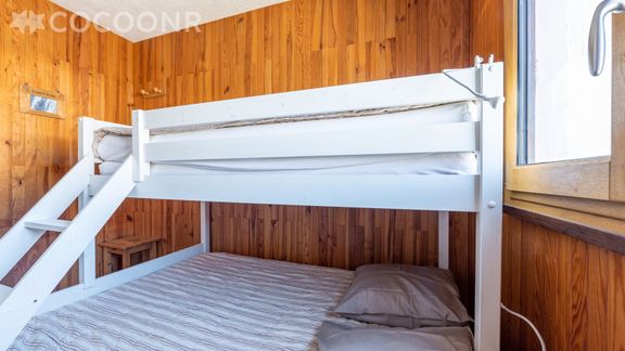 - Une chambre avec un lit superposé (un lit double en bas et un lit simple en haut)