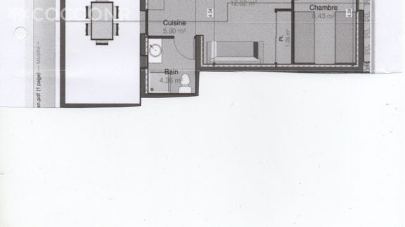 - Une pièce de vie de 18 m² avec canapé-lit double, coin repas, TV...