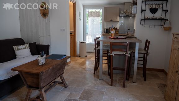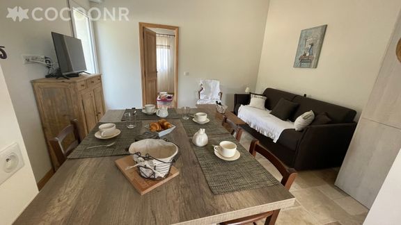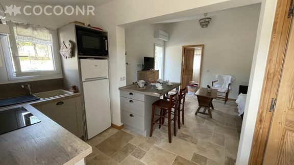 Appartement très bien agencé et équipé, il y a vraiment tout ce qu'il faut dans la cuisine. La piscine est très sympa, petite mais c'est idéal pour deux personnes. Le jardin est clôturé ce qui a été parfait pour notre chien. L'appartement est très isolé, idéal pour déconnecter, mais la voiture est donc indispensable.
