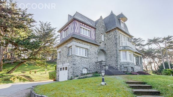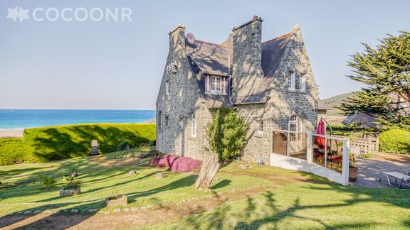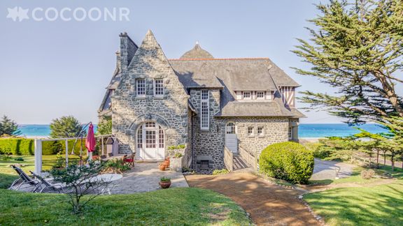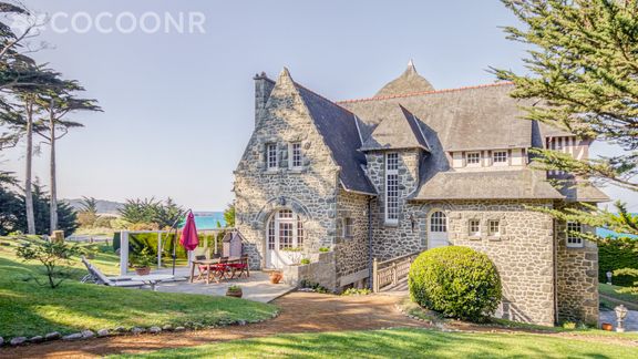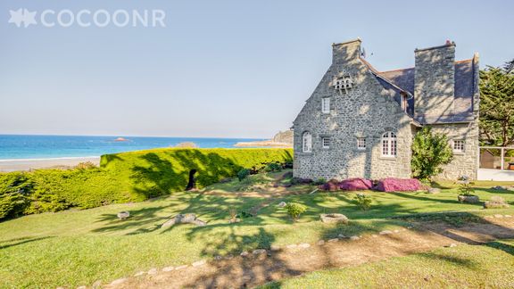 Venez vous déconnecter à la mer ! La maison Castel Breiz à Sables D'or les Pins saura vous séduire par sa fantastique façade en pierre et son air de château. Cette superbe demeure familiale avec une magnifique vue mer et un accès direct à la plage, aménagée sur 3 étages, dispose d'un salon confortable et meublé avec goût, d'une cuisine entièrement équipée, de 6 chambres, 2 salles de bain et 1 salle de douche, 3 toilettes. Non loin de toutes commodités et de différentes activités (balades sur la plage, randonnées, activités nautiques, tennis, golf, marché, etc...) cette villa est idéale pour se retrouver en famille ou entre amis. Parking privé dans la propriété. Draps et serviettes inclus.