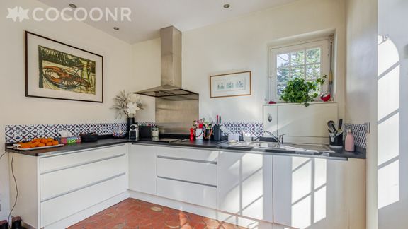 - Une cuisine moderne, entièrement équipée : réfrigérateur, lave-vaisselle, four, plaques à induction, micro-onde, bouilloire, grille-pain, cafetière Nespresso... dotée d'une porte-fenêtre donnant directement sur la terrasse.