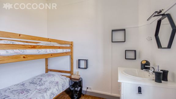 - Chambre 5 : un lit superposé et un lavabo