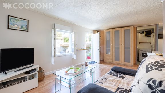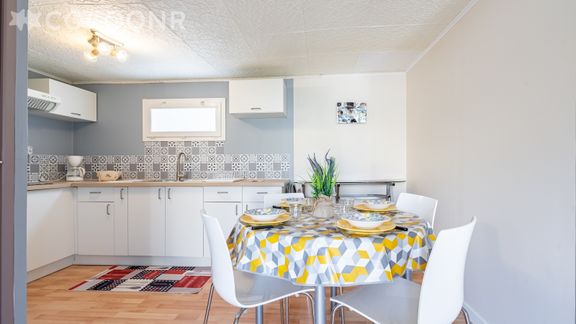 - Une pièce de vie de 30 m² avec TV, canapé-lit double et espace salle à manger pouvant accueillir 4 convives.