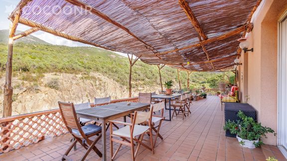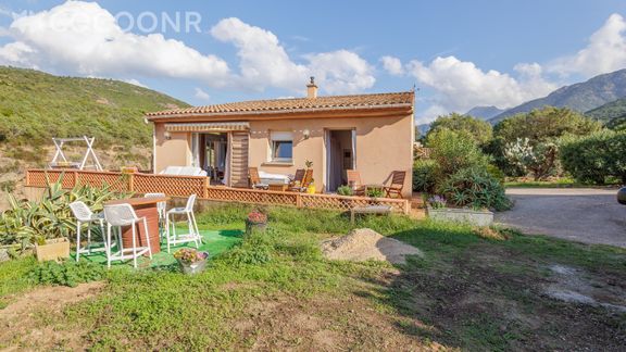 L'agence Cocoonr/Book&pay vous propose à la location, sur la commune de Galéria, cette charmante maison climatisée avec vue montagne, surplombant la rivière, une superficie de 160 m² et pouvant accueillir jusqu’à 10 voyageurs. Elle est composée d’une jolie pièce à vivre de 20 m², ouverte sur la salle à manger et une cuisine équipée, de trois belles chambres, d'une une mezzanine aménagée en chambre, d'une salle de bain, d'une salle d'eau et vous pourrez profiter d’un jardin d’environ 5 000 m². Wifi, draps et serviettes inclus, nous n’attendons plus que vous !