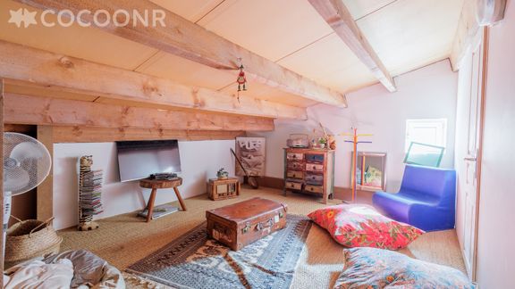 - Une pièce de vie de 20 m² avec TV, canapé...