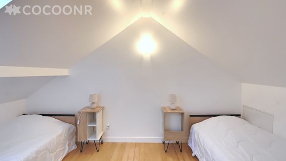 - Chambre ouverte avec un lit double (140x190) avec une entrée donnant sur une seconde pièce avec deux lits double (90x190).