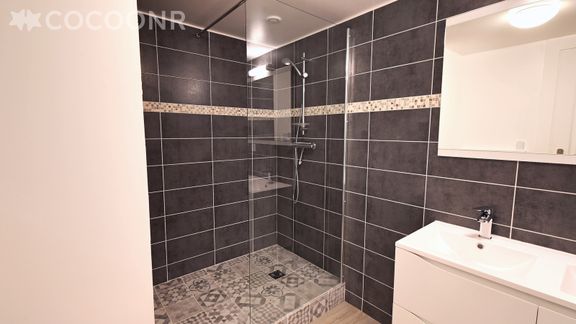 - Une salle d'eau avec douche italienne, double vasque, WC