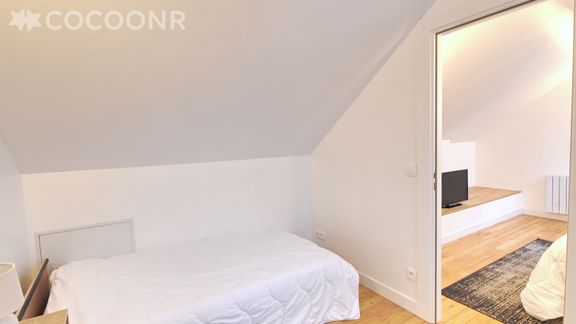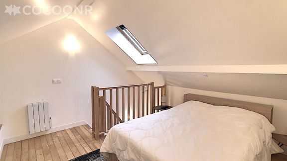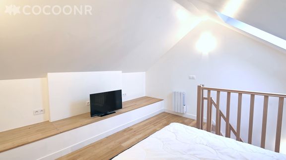 En mezzanine (un espace nuit accessible par un escalier) avec TV