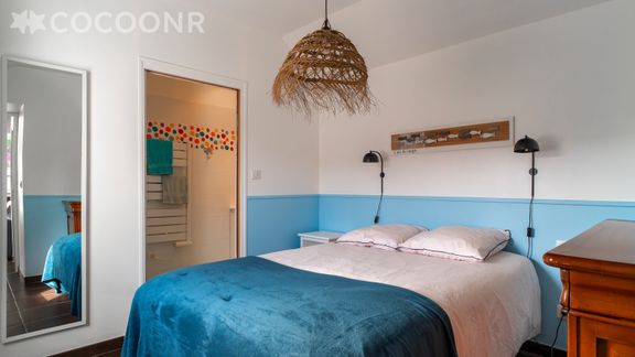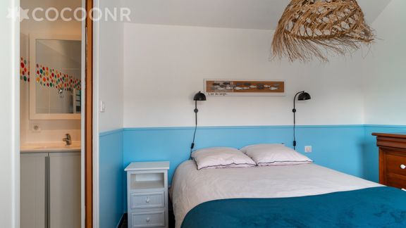 - Une chambre avec un lit double (140×190) et une salle d'eau attenante avec douche