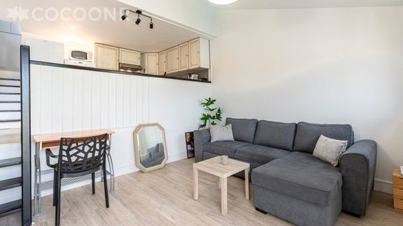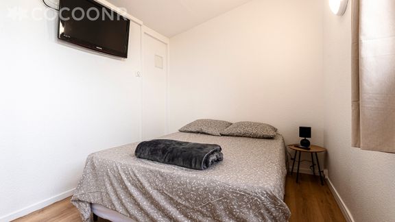 - Une pièce de vie de 20 m² avec un canapé-lit double, TV et coin repas