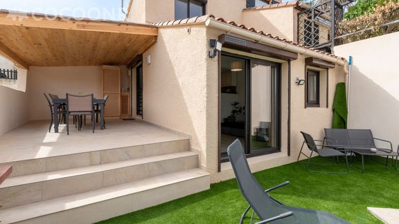 - Un beau jardin synthétique clos et privé de 50 m² avec barbecue