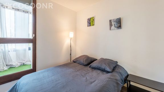 - Chambre 1 : exposée au sud, elle dispose d'un lit double 140 x 190 cm, une armoire avec penderie. Accès à la terrasse fermée.