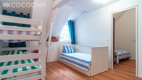 - Chambre 4 (en enfilade avec la chambre 3) : avec 1 lit superposé (2 couchages) et 1 lit simple