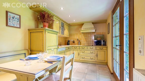 - Une cuisine équipée avec notamment : bouilloire électrique, four à micro-ondes, grille-pain, lave-vaisselle, plaques de cuisson, cafetière à dosettes Senseo... et espace repas.