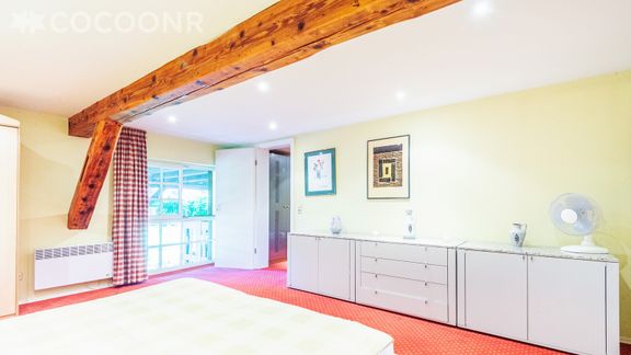 - Un balcon de 5×1.50 m avec vue sur un grand parc arboré et fleuri, donnant sur la piscine.