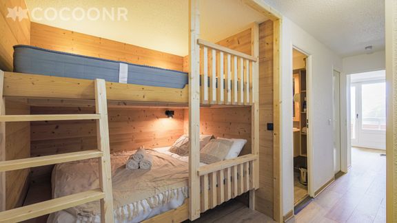 - Un espace nuit avec un lit superposé avec 2 lits queen-size (160×200)