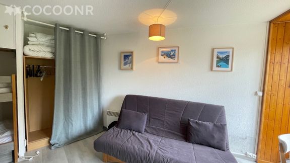 Petit studio très pratique avec casier à skis et parking, proche du palais des sports (piscine...).