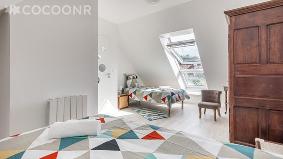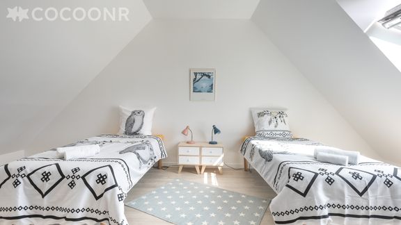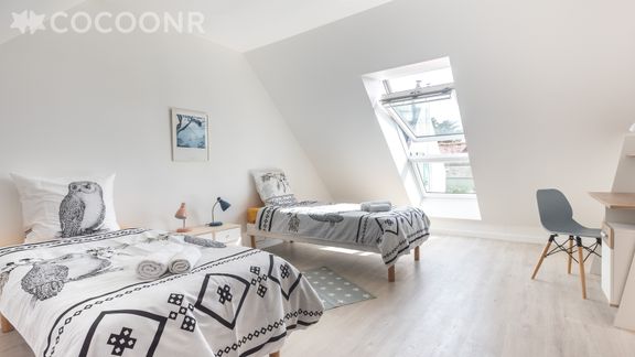 - Chambre 2 : spacieuse et disposant de deux lits simples, d'une armoire et d'un bureau