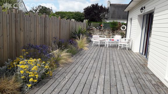 Ce quartier calme et agréable est situé à deux pas de la petite plage du Gored. Supérette à 15 min à pied environ. Bourg, port, petit marché, comptez 30 min de marche.